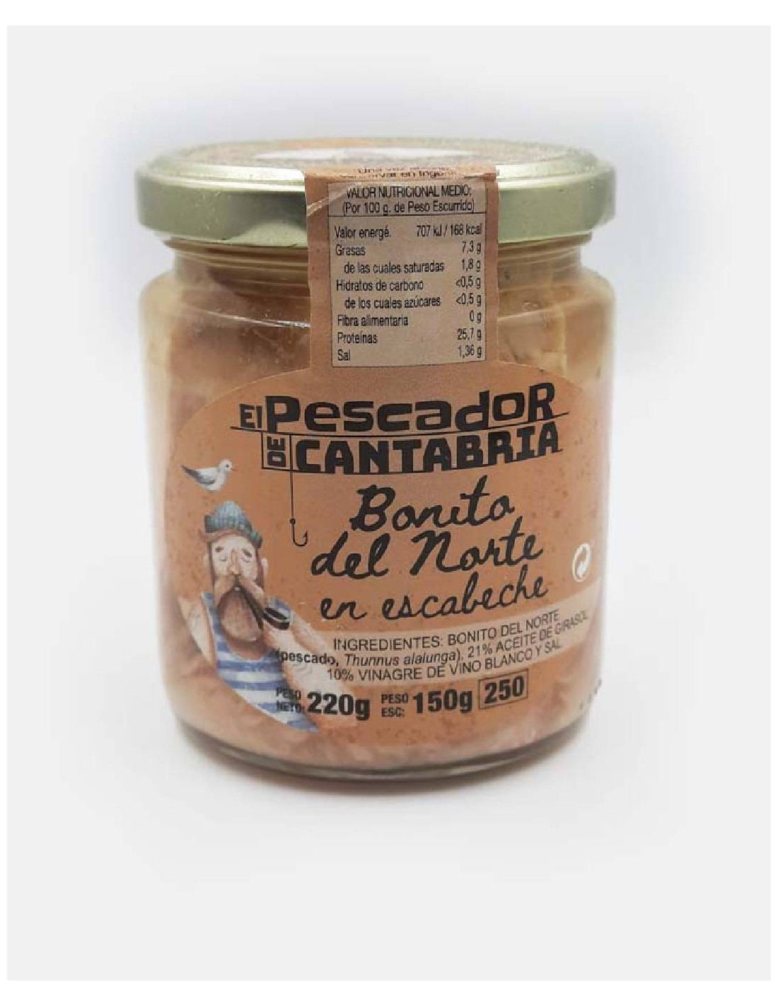El Bonítol del Nord en escabetx es distingeix per la seva carn suculenta i el seu sabor intens, resultat d'un procés tradicional d'escabetxat. Procedent de les aigües del Cantàbric, aquest bonítol és una delícia culinària que no pot faltar al teu rebost.